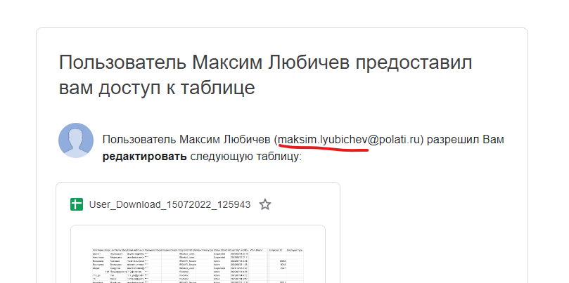Так же есть ещё один важный момент, когда пользователь шарит файл в гугл диске, уведомительное письмо приходит от «drive-shares-dm-noreply@google.com»