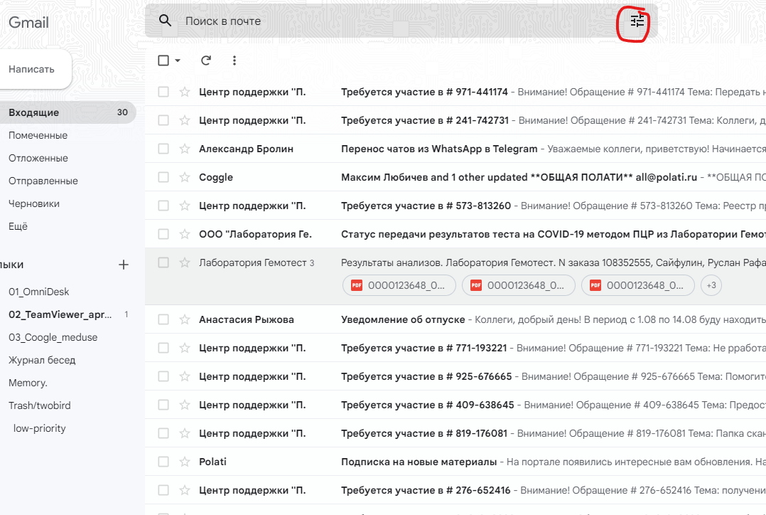 1. Нажать на иконку с тремя ползунками в строке поиска.
